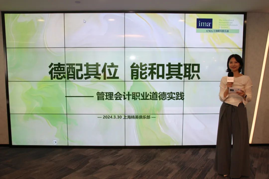 2024年3月30日,由CMA上海精英俱乐部主办的 “德配其位,能和其职——管理会计职业道德实践” 线下活动成功举办。此次活动由CMA持证者李杭沁女士主持,共有近60位CMA持证人到场参与。