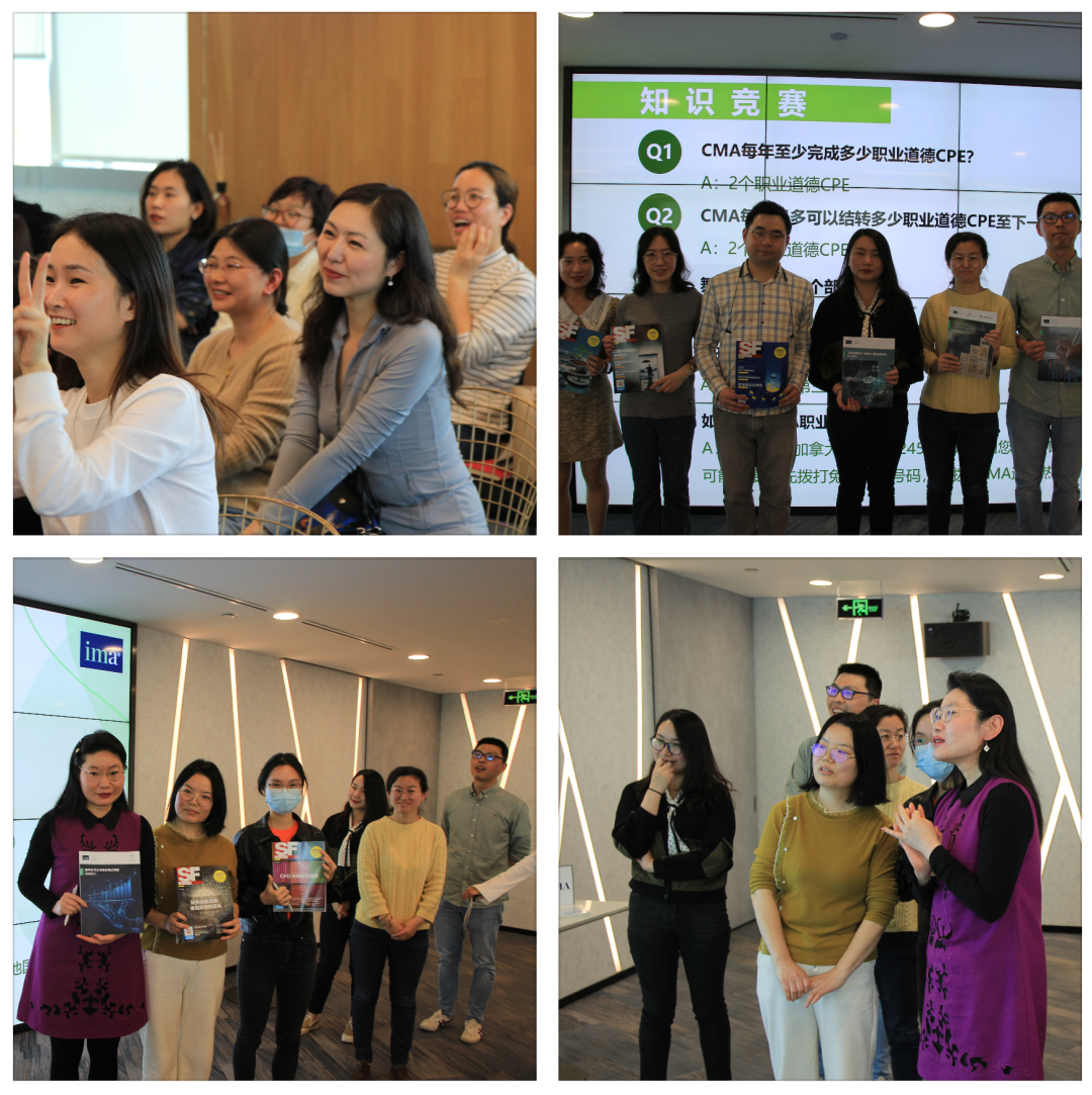 接下来,开始了此次活动的热身互动交流环节-“职业道德知识竞赛”。9位CMA持证人分为三组参与了知识竞赛,各组群策群力积极竞答,在轻松欢快的氛围中完成了知识问答。