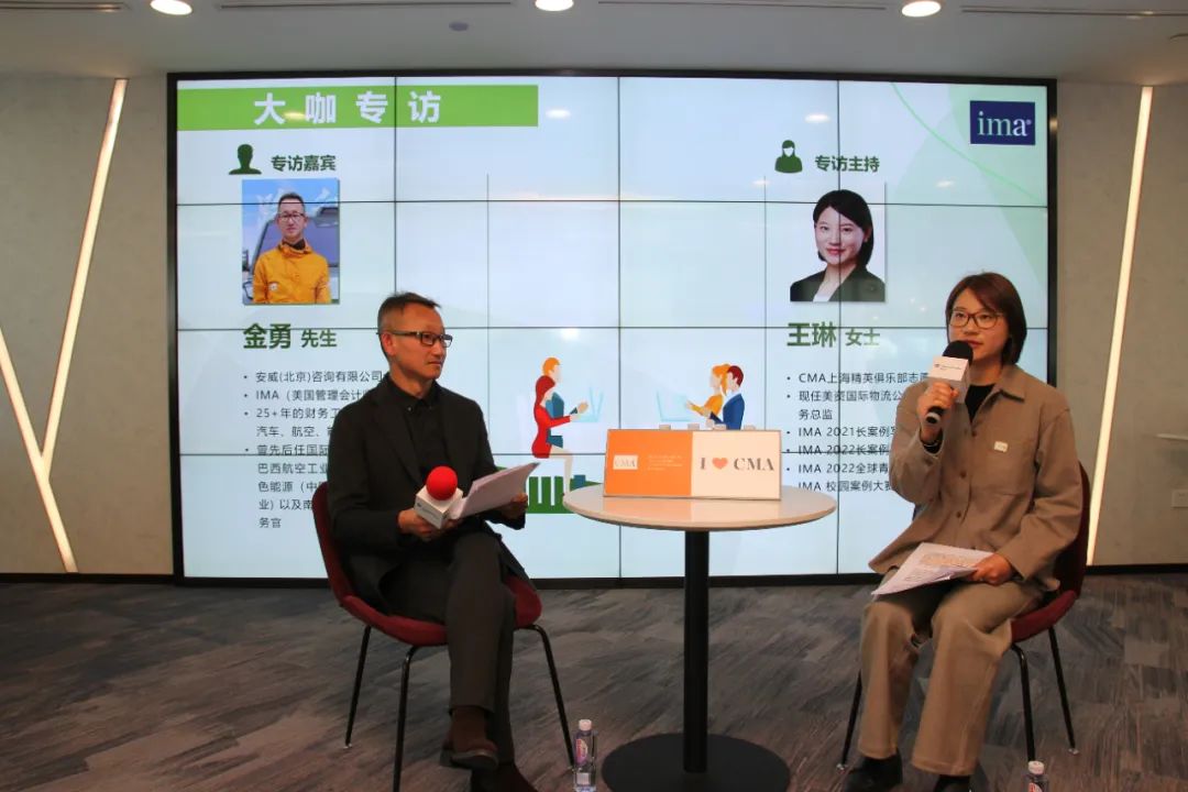 短暂茶歇后,活动进入到 “大咖专访—管理会计职业道德实践”环节。此次受访嘉宾是安威(北京)咨询有限公司合伙人金勇先生,专访由上海CMA精英俱乐部志愿者成员、现任美资国际物流公司中国区总经理兼财务总监的王琳女士主持。金勇先生首先分享了自己对于职业道德的理解,就 “诚实守信” 和 “忠诚” 两个方面进行了阐释,还结合IMA职业道德和价值观中的 “道德决策六步法” 分享了财务人员在发现违反职业道德的行为时应该如何去做。随后金先生就 “IMA 职业道德行为准则”中的胜任能力分享了自己的观点,最后借助多个违反职业道德相关的案例,针对当今数智化时代对于财务人员的影响和挑战发表了观点。