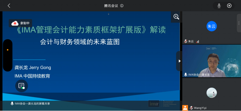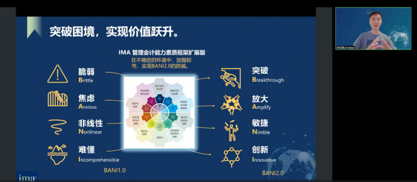 在嘉宾分享环节,IMA中国学习与发展总监龚长龙先生以行业数据为切入点,揭示转型紧迫性并深入解析IMA管理会计能力素质框架的内容更新。他表示,2019 版框架以“知识”为导向,含6大领域、33项能力,是CMA认证与课程开发的基础;2025 版扩展版则以“行动”为导向,新增“会计领域新兴技术”、“数据分析与洞察” 等5大领域,形成 10 大核心能力,同时还未财会专业人士提供了清晰的职业发展路线图。