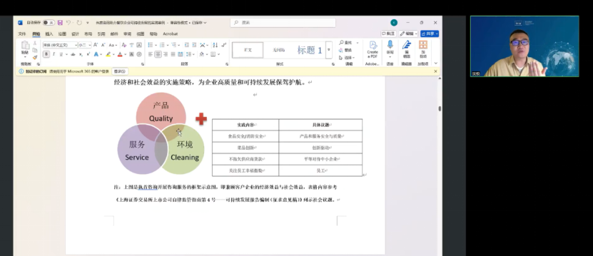 活动最后,主持沈悦先生总结与回顾了中短期效果与长期能力是可持续发展的内在逻辑,在中文版IMA可持续发展商业实践证书课程正式推出之际,他基于餐饮企业践行可持续发展理念的案例,强调了财会专业人士学习及应用可持续发展理念,赋能个人与企业发展的必要性与紧迫性,在不确定时代,财会专业人士需以IMA管理会计能力素质框架为抓手,平衡短期效果与长期能力,实现“降本提效”到“开源、提质、创新”的突破。