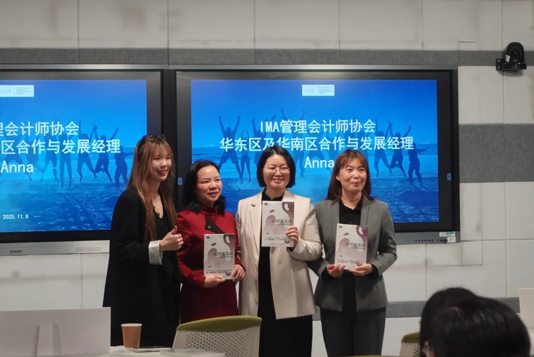 活动开场,IMA管理会计师协会华东及华南区合作与发展经理朱雪宏女士介绍了协会最新动态及规划。她以《IMA管理会计能力素质框架》的持续演进为切入点,指出协会发展始终与财会行业的动态发展紧密呼应。同时,她也分享了协会在IMA会员服务等方面的成果与未来展望,强调协会希望以俱乐部为平台,高效地服务广大会员及会员企业,全力支持财务与会计专业人士实现职业发展与价值跃迁。此外,她还向现场与会者介绍了协会最新出版的“管理会计能力提升与企业高质量发展系列图书”——《AI财务实战》。