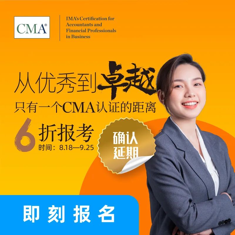 为帮助财务专业人士学习管理会计知识,提升职场竞争力和拓展职业人脉。本次“从优秀到卓越,只有一个CMA认证的距离”的6折优惠活动的截止日期将延期至9月25日。