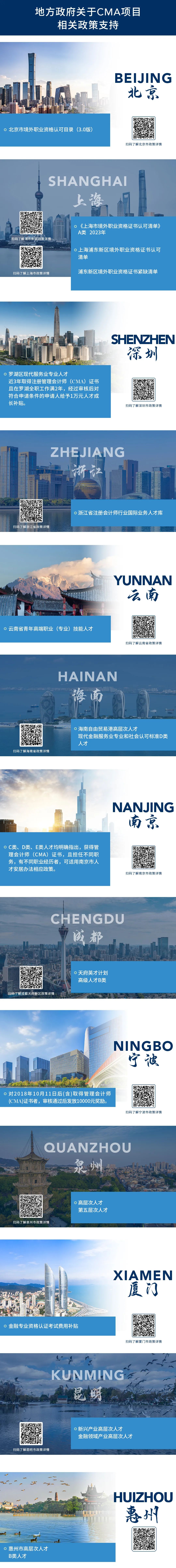 在中国,CMA认证通过本土化与国际化相结合的方式,培养了众多高素质综合型人才,获得了各个层面的广泛认可。仅就政府层面,据不完全统计,CMA认证已获得包括北京、上海、深圳、南京、宁波、厦门、泉州、惠州、成都天府新区、海南、云南、浙江等在内的多省市地区相关政府部门认可,列入重点引进及培养清单,享受相应人才政策便利保障服务。