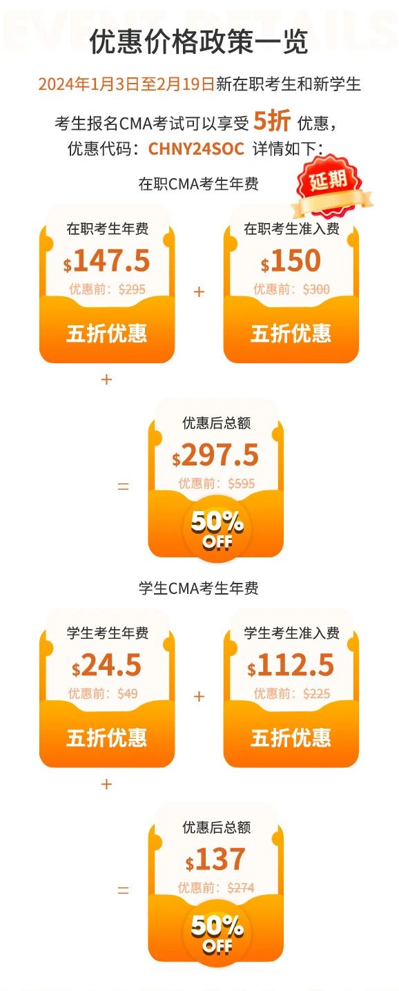 为帮助财务专业人士学习管理会计知识,提升职场竞争力和拓展职业人脉。本次“2024 探索职业新世界”的5折优惠活动的截止日期将延期至2月19日。