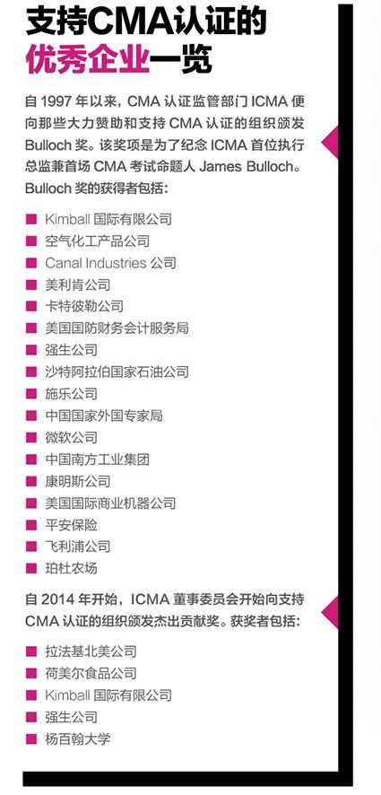 自50年前IMA®管理会计师协会首次推出CMA®注册管理会计师认证以来,管理会计师们一直在努力取得CMA认证,并向同行推介CMA认证值得努力获取的原因所在。CMA认证的声誉和CMA持证者人数的增长不仅得益于CMA持证者的现身说法,也得益于招聘经理、人力资源人员以及在招聘时优先考虑CMA持证者并支持员工考取CMA认证的公司。