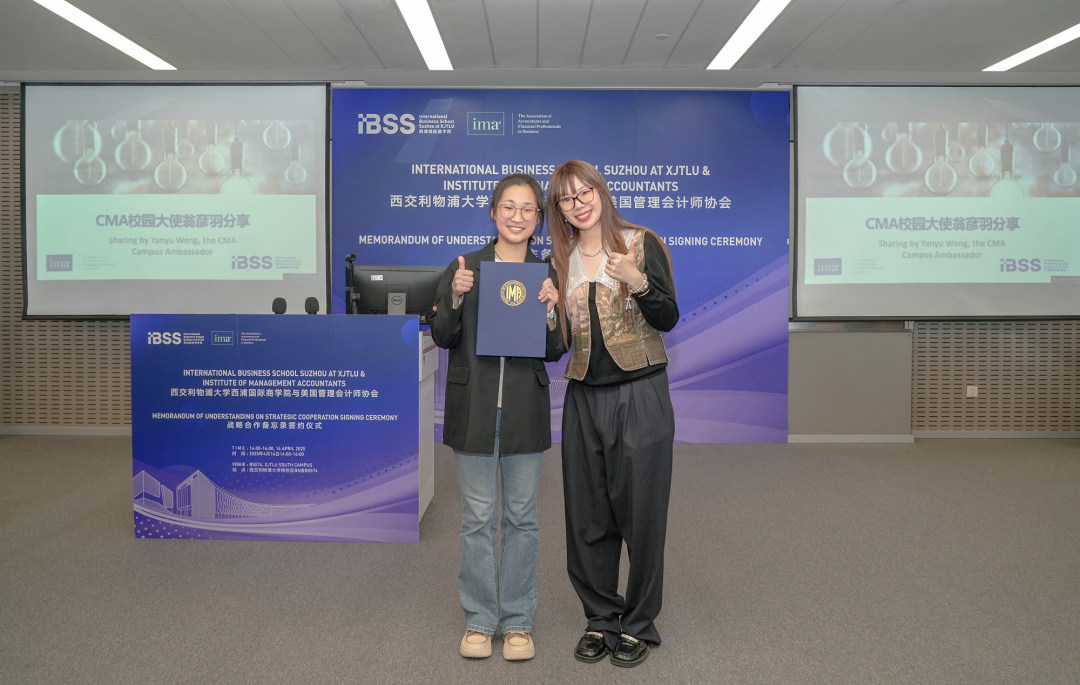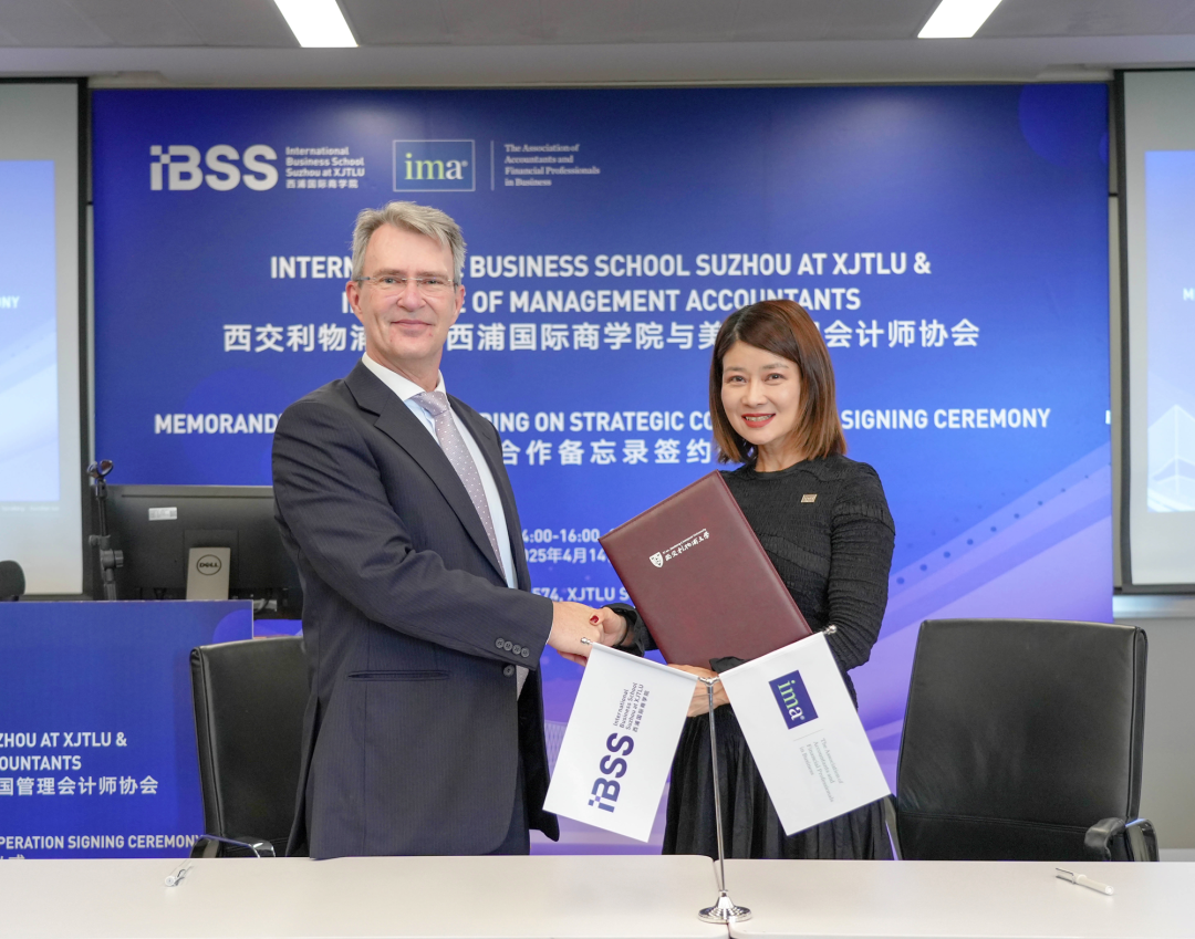 2025年4月14日,IMA管理会计师协会【以下简称 “IMA” 】与西交利物浦大学(XJTLU,简称西浦)西浦国际商学院【以下简称 “IBSS” 】签署了合作谅解备忘录,此次合作将为IBSS学生提供CMA注册管理会计师和财务与管理会计(FMAA)认证的便捷通道,助力学生职业发展与国际竞争力提升,共同促进国际化管理会计人才培养。签约仪式于西浦商学院内举行。