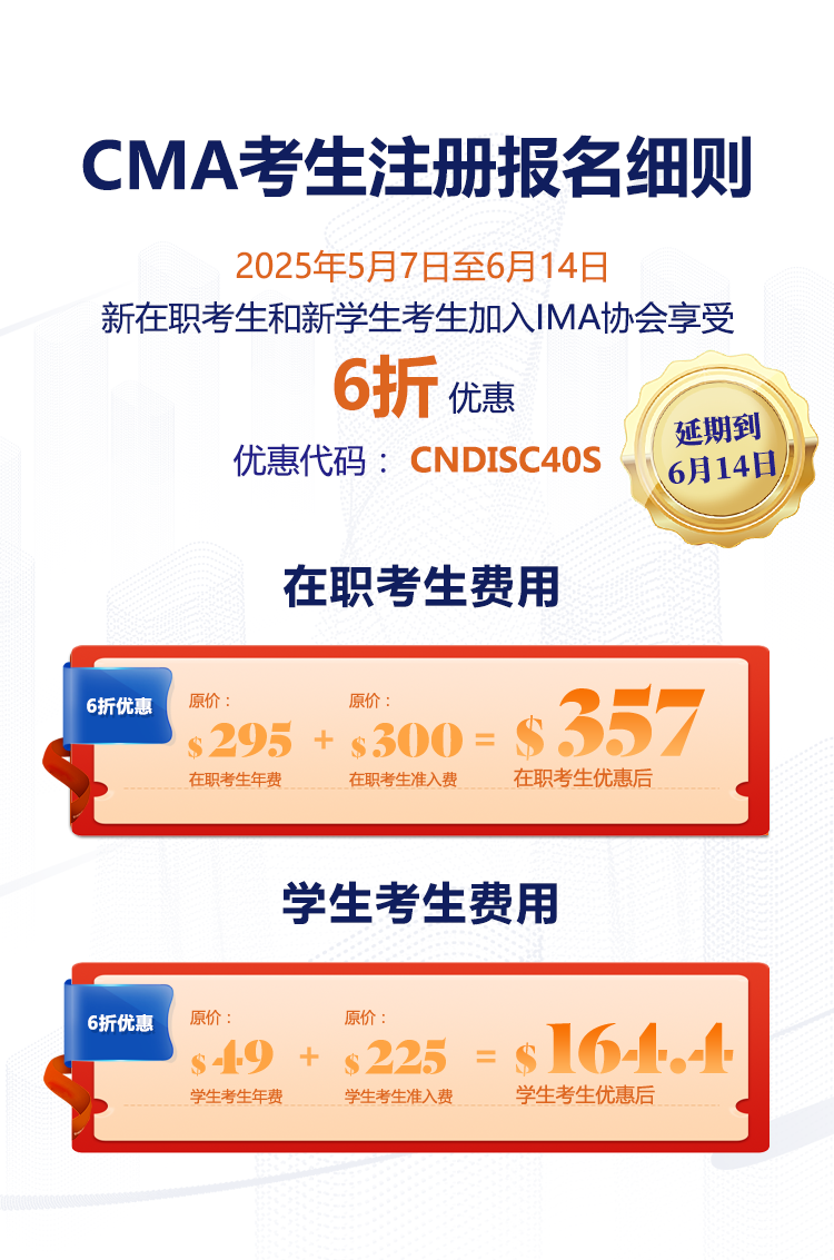 为助力财务专业人士深入学习管理会计,提升职场竞争力并拓展优质人脉,IMA协会推出的“人工智能浪潮来袭,如何稳立职场不被卷走?CMA认证是您逆流而上的底气”6折活动代码仅剩最后1,000个名额,活动延期至6月14日截止。名额有限,报完即止!请合理规划报名,切勿错过最后机会。