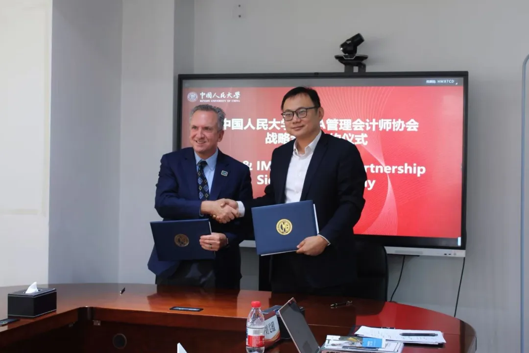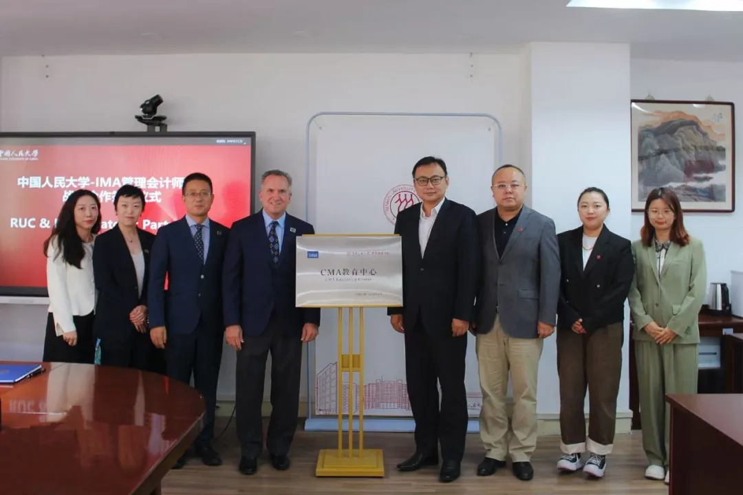 DePrisco先生对人民大学在学科建设与国际合作方面取得的成就表示赞赏,并分享了IMA多年来服务企业及高校的经验。他表示,IMA将提供全方位、立体化且国际前沿的人才培养体系,通过高质量服务丰富教育内容、提升学生就业竞争力,助力培养具备国际化视野和管理会计实践能力的高层次人才,为中国经济发展持续赋能。会谈期间,DePrisco先生为中国人民大学继续教育学院 “CMA教育中心” 正式授牌,双方共同签署了战略合作备忘录MoU,标志着两大机构在强强联合、资源共享与优势互补方面迈出关键一步。