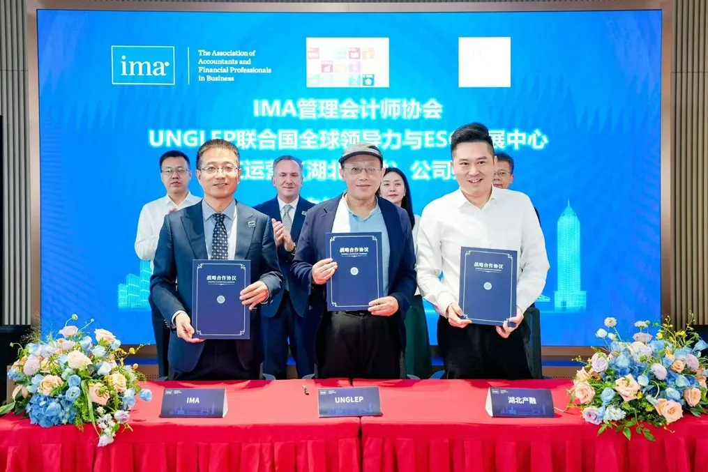 随后,IMA与联合国全球领导力与ESG发展中心、湖北产融资本管理有限公司签署了合作意向书。未来将整合三方在全球专业权威与庞大财务专业人士网络、国际ESG声誉与港交所IPO辅导实践经验、本土资本实践与资源方面的独特优势,共同打造“企业IPO-ESG赋能计划”的高端服务平台,旨在为中国拟上市企业提供全方位的IPO筹备支持,重点强化其在环境、社会及治理(ESG)领域的战略规划、体系建设、绩效提升和信息披露能力,帮助企业构建可持续的商业模式,满足国内外资本市场日益严格的监管要求,增强投资吸引力,最终推动企业实现高质量、可持续的上市发展,并优先为IMA企业会员提供专属赋能服务。