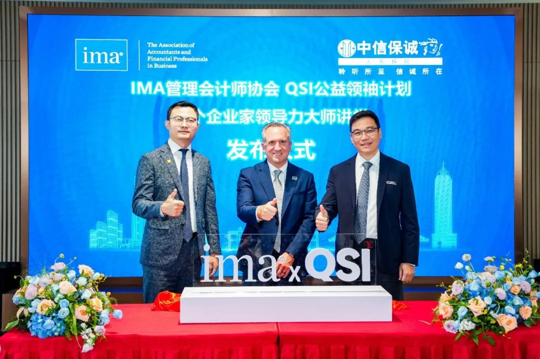 活动最后,IMA总裁及首席执行官DePrisco先生、中信保诚人寿保险有限公司湖北分公司总经理张力先生、QS中国首席教育专家李茂胜先生共同启动“QSI公益领袖计划暨首个企业家领导力大师讲堂发布仪式”。中信保诚人寿作为公益组织QS ImpACT(QSI)在中国大陆金融领域的独家公益合作伙伴,将与IMA共同推动联合国可持续发展目标(SDGs)在中国的落地与实践。三方致力于打造一个集公益实践、国际视野与专业融合于一体的高端平台。未来将定期开展公益活动,并于今年11月联合推出首期“公益领袖计划——企业家领导力大师讲堂”,融合IMA在可持续发展与财务管理方面的专业课程体系,助力青年一代及企业家在公益项目中提升战略思维、项目管理与社会影响力,培养兼具商业智慧与社会责任的领袖。